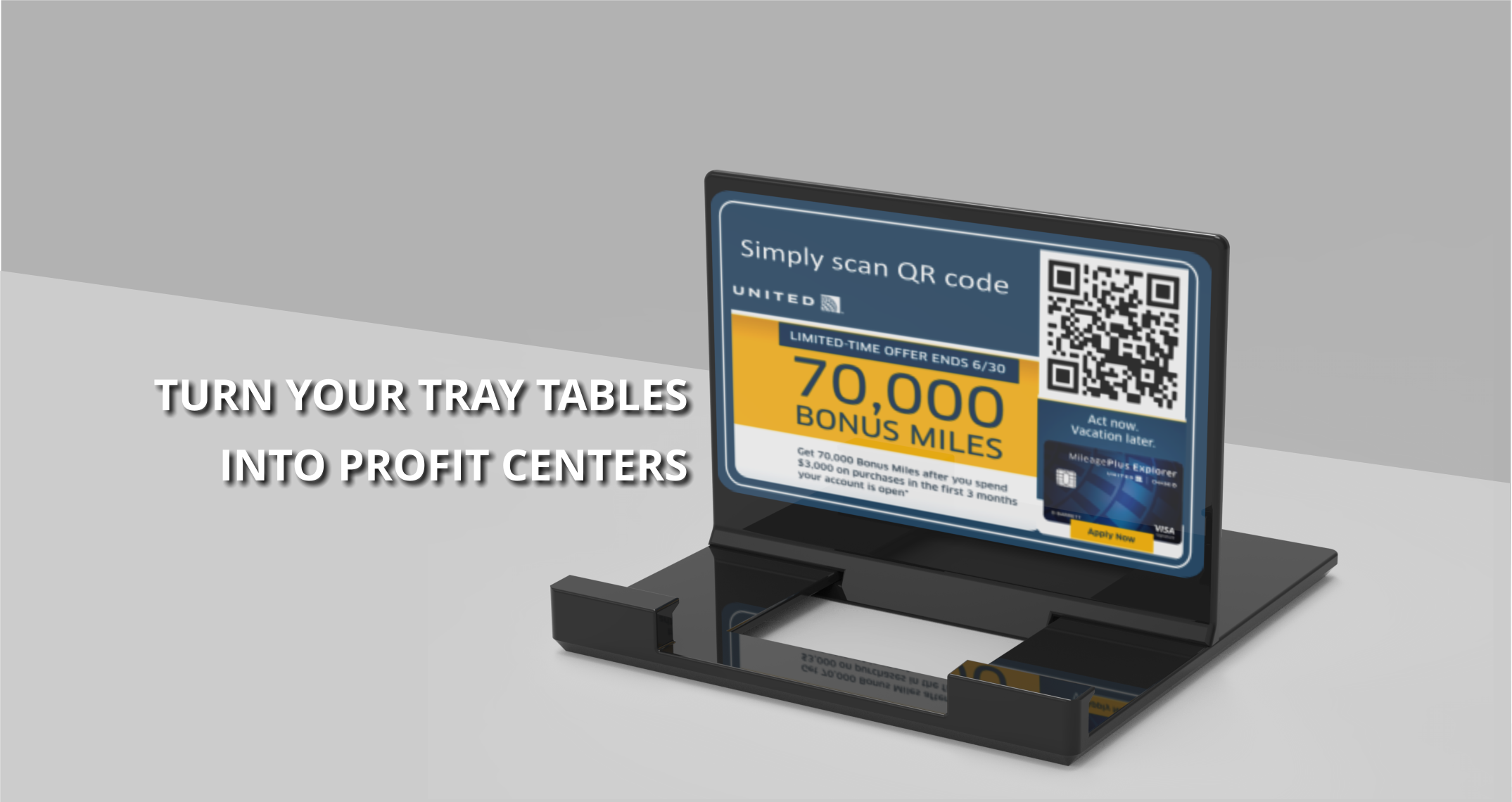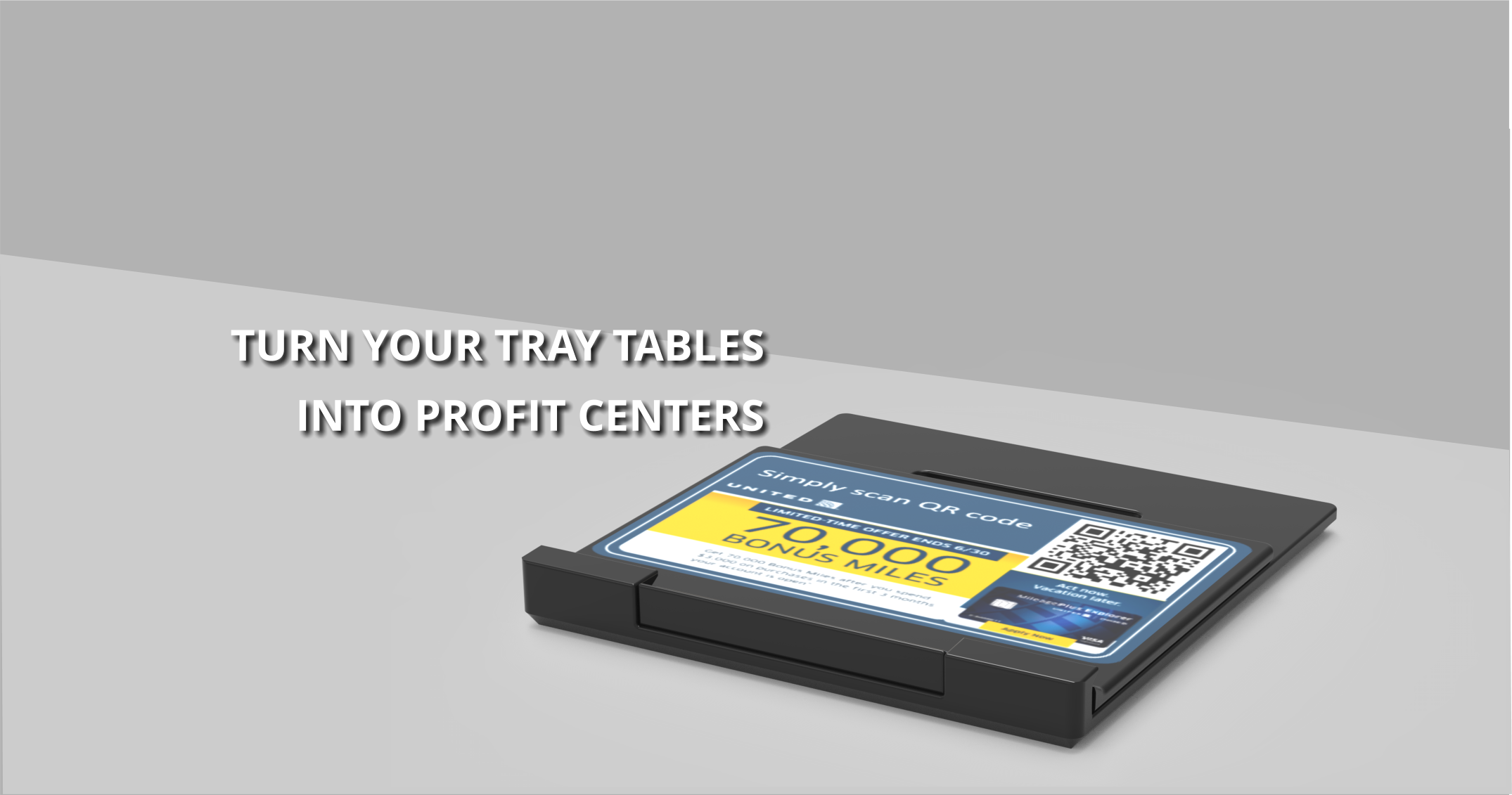 SmartTray patent pending QR code encoded ads (QRADS) subsidize costs of maintaining and replacing food tray tables turning cost centers into profit centers. SmartTray markets and sells non-intrusive ads to mass transit operators’ loyalty partners and blue-chip advertisers. Advertisers and loyalty partners benefit from exposure to affluent business and leisure travelers in a captive environment, when they are not distracted with nothing to do and nowhere to go – unprecedented dwell time with ads. SmartTray PED friendly tray tables deliver superior ergonomics, better entertainment experience, and help reduce spread of COVID 19 and other infectious diseases. SmartTray does all work from marketing, to sales, to QRADS installation, maintenance, and removal, and shares its operating profits with participating airlines, rail, bus, and cruise ship operators.