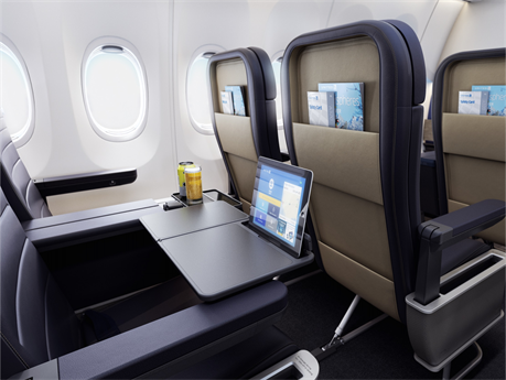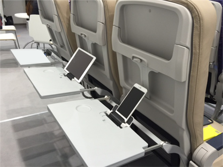 This pictures show replacing an existing Premium Class tray table with Smart Tray X4 in three easy steps.