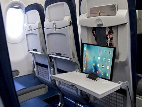 Swapping out traditional food tray tables with SmartTray® integrated PED holders is easy, fast, and cost effective and requires no disruption in service or vehicle downtime. Smartphones and tablets are always within arm’s reach and in full sight. No muscle fatigue or pain holding PEDs for superior ergonomics. Lowest cost option. Easy to install. Maintenance free. Patented.